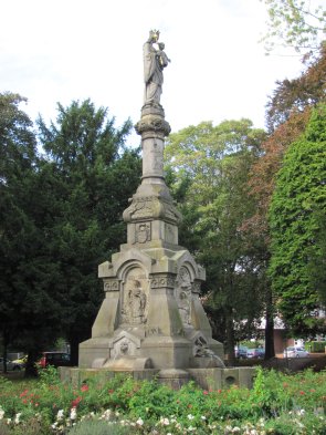 In front of the North Gate, a municipal burial ground was laid out in 1819 on the site of a bastion of the medieval city fortifications, which was in use until 1843. The cemetery, which was left open, was then transformed into a green space with an outer perimeter path and diagonal paths in 1903. The various passageways enabled the townspeople to pass through the small, prestigious green space to the post office, the nearby railway station and several commercial businesses in the Gründerzeit quarter of the town. In 1909, the town and country community erected the Mariensäule (Mary's Column) exactly in the middle of the more than 6000 square metres of green space. The lower part of the monument, created by the Beckum sculptor Heinrich Schmülling in honour of Mary, was decorated with reliefs and commemorative plaques. The generous enclosure of the time of origin no longer exists today. The park is open to the public.