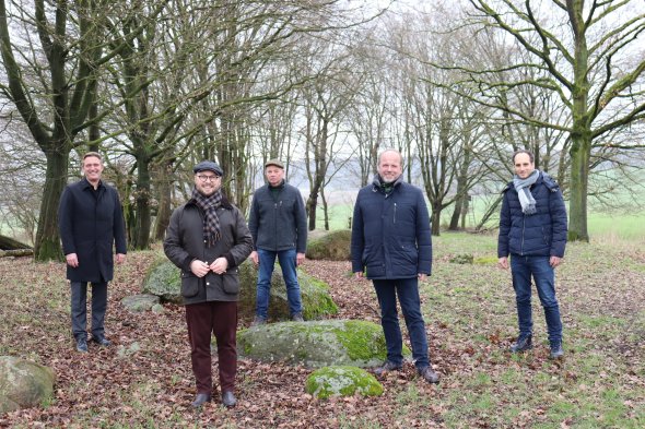 Thanks to NRW funding and three sponsors, the town of Beckum is only bearing part of the total costs of 24,000 euros. 11,000 euros come from the Heimat Fund in the funding programme "Heimat. Future. North Rhine-Westphalia - We promote what connects people" programme. Sparkasse Beckum-Wadersloh, the Antiquities Commission for Westphalia of the Landschaftsverband Westfalen-Lippe and the Heimat- und Geschichtsverein Beckum are contributing to the costs. Mayor Michael Gerdhenrich thanked the sponsors at the edge of the monument for their contribution. "When you stand in front of it, you don't realise what a special feature you are dealing with. That's why the stone cist grave should be more visible again. The extensive information and sculptural elements will ensure this," explained the head of administration.