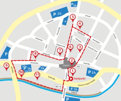 - Starting and finishing point: at the city model next to the Provost Church of St. Stephanus