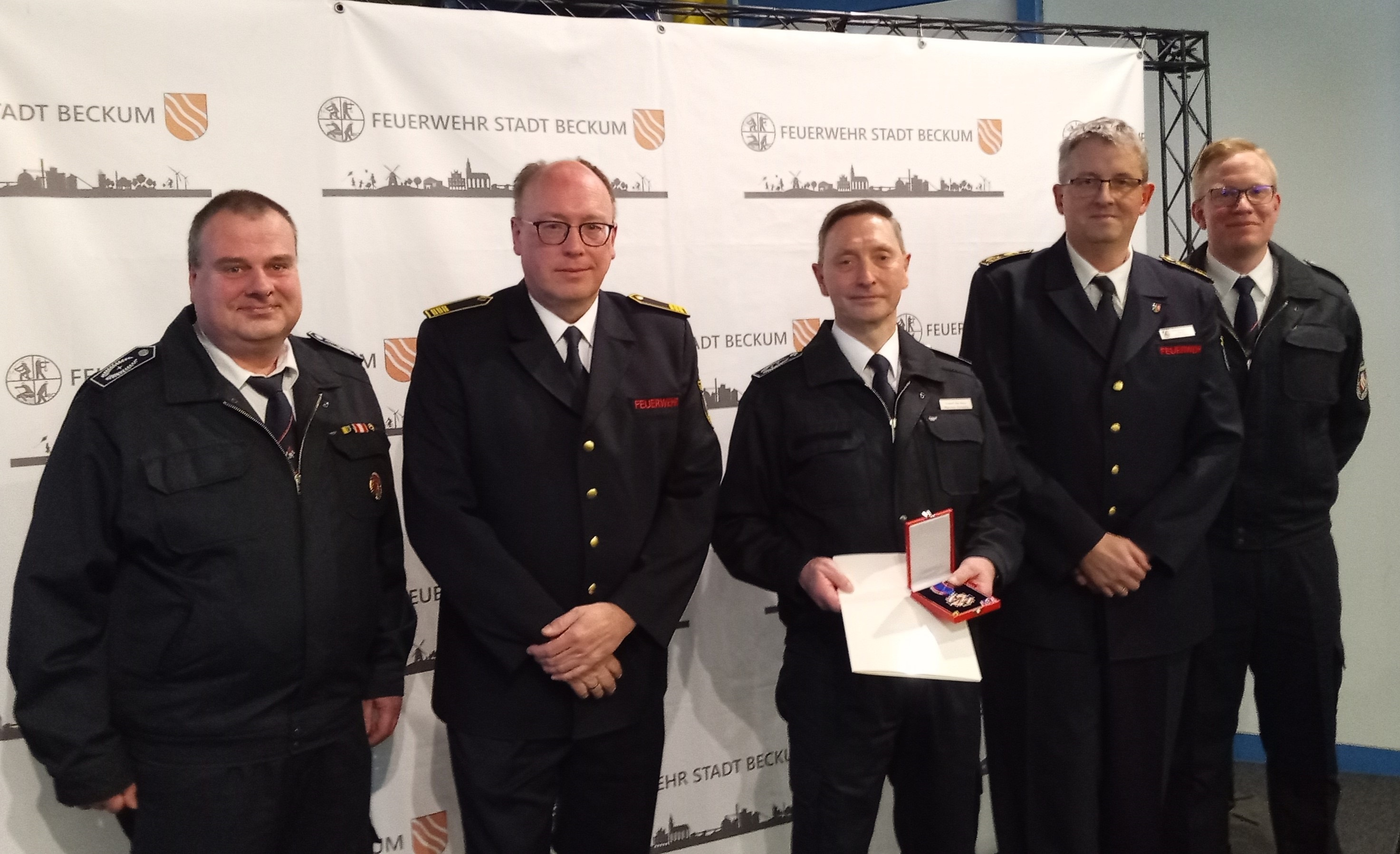 The head of the Beckum fire brigade was honoured with the German Fire Brigade Cross of Honour in Silver for his outstanding achievements in the fire service.