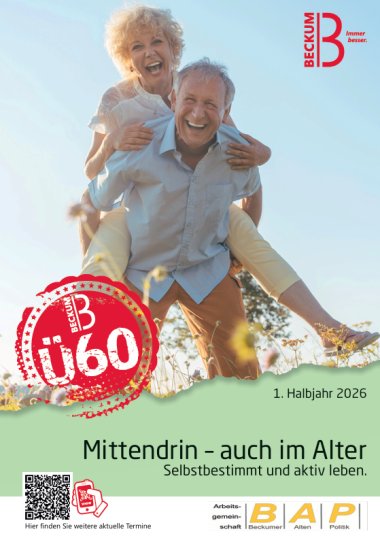 Die Arbeitsgemeinschaft Beckumer Altenplanung (AG BAP) gibt halbjährlich einen Veranstaltungskalender im Printformat heraus. Dieser bietet einen Überblick über Angebote und Veranstaltungen für Seniorinnen und Senioren. Wenn auch Sie mit einem Angebot in den Kalender aufgenommen werden wollen, wenden Sie sich bitte an Frau Kramer.