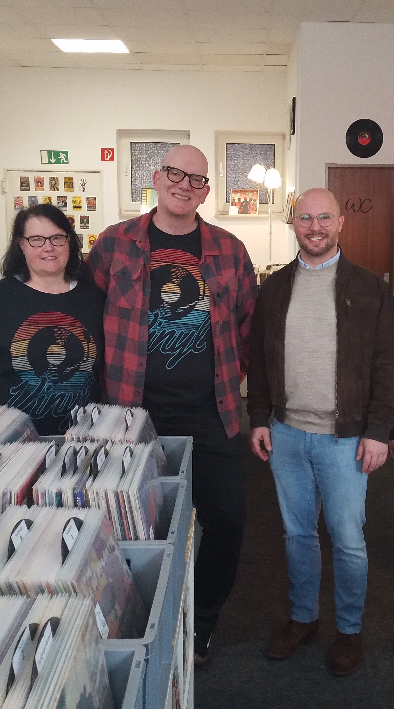 Zur Neueröffnung der „Plattenkiste“ am Nordwall 47 gratulierte Bürgermeister Michael Gerdhenrich zusammen mit der Innenstadtmanagerin Helga Grothues. Das Projekt wird im Rahmen des NRW-Programms „Zukunftsfähige Innenstädte und Ortszentren“ gefördert.