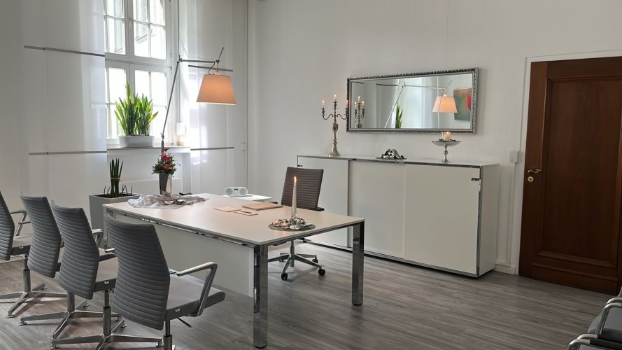 Das hell und freundlich eingerichtete Trauzimmer im Rathaus bietet 19 Sitzplätze.