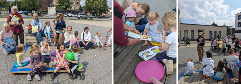 06.06.2024, Vorlese- und Bastelnachmittag mit den Vorlese-Paten der Stadtbücherei Neubeckum auf dem Rathausplatz